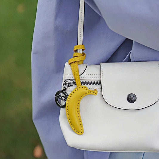 Creative Banana Leather Bag Charm – Full-Grain Cowhide Handmade Accessory for Bags and Keys, Whimsical Gift Idea