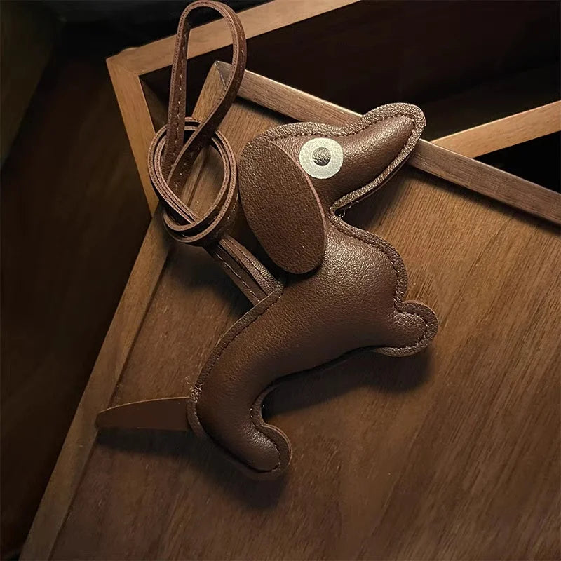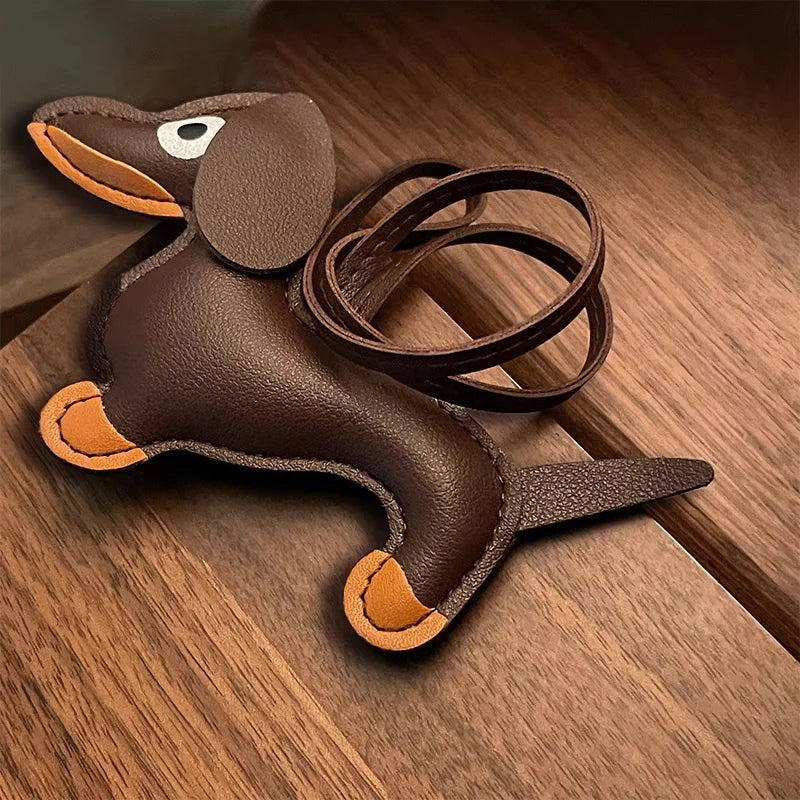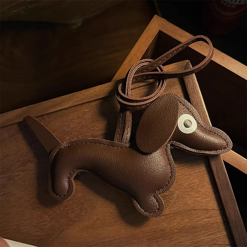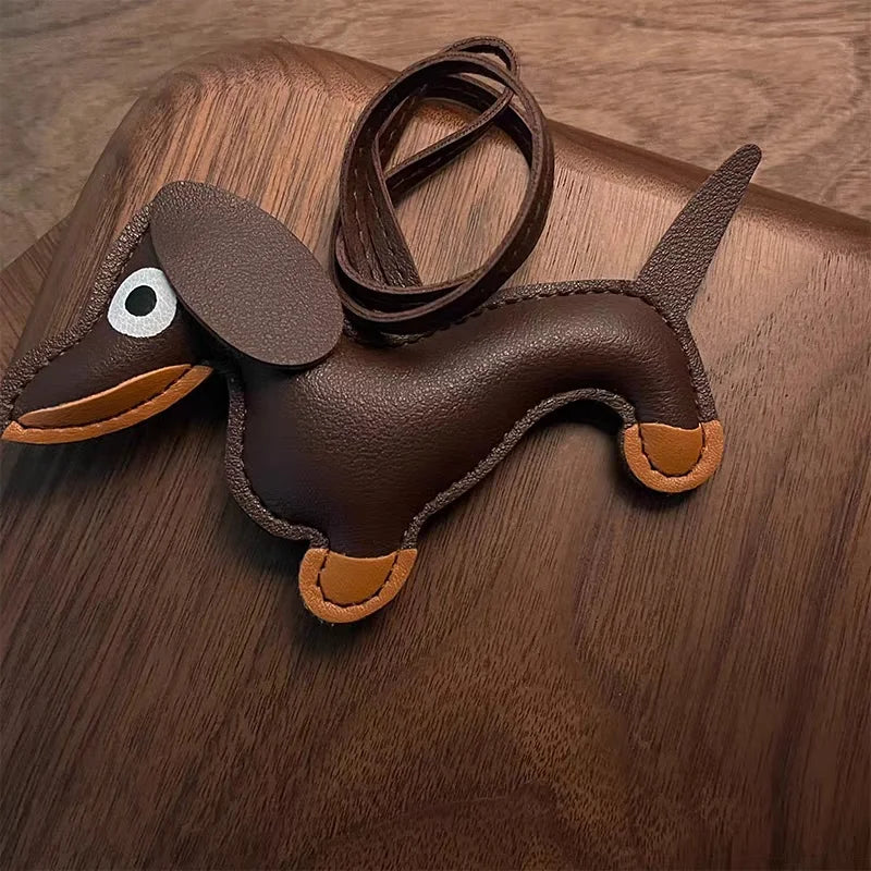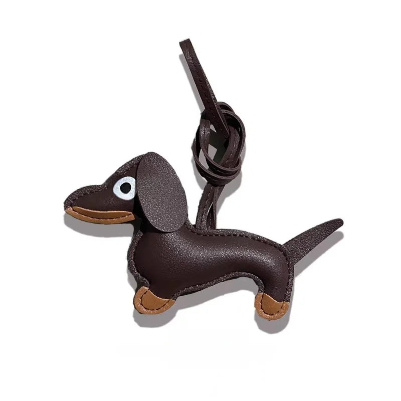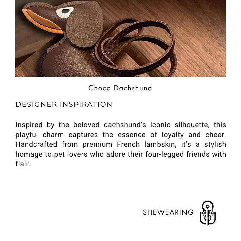 Dije para bolso de piel de perro salchicha Choco – Colgante artesanal de piel de cordero francesa | Llavero de perro salchicha | Un regalo divertido para amantes de las mascotas