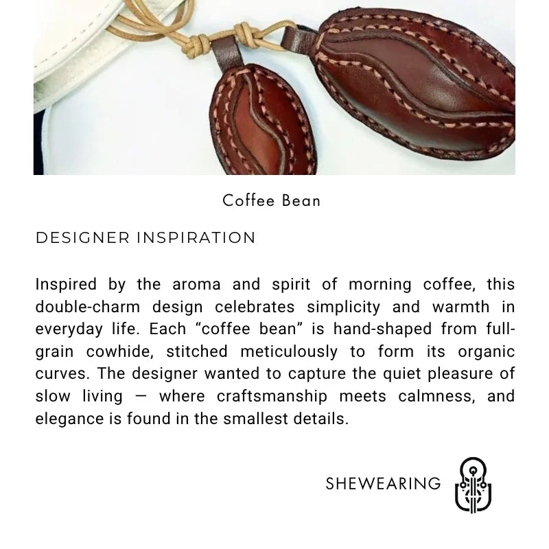 El dije para bolso de cuero Nordic Coffee Bean refleja la belleza del minimalismo y la artesanía. Elaborado a mano con piel de vacuno de plena flor de primera calidad, cada pieza se corta, moldea y cose individualmente para imitar un grano de café tostado: de tono cálido y suave al tacto.