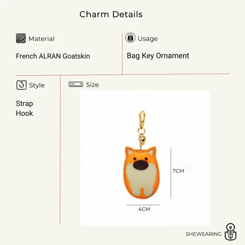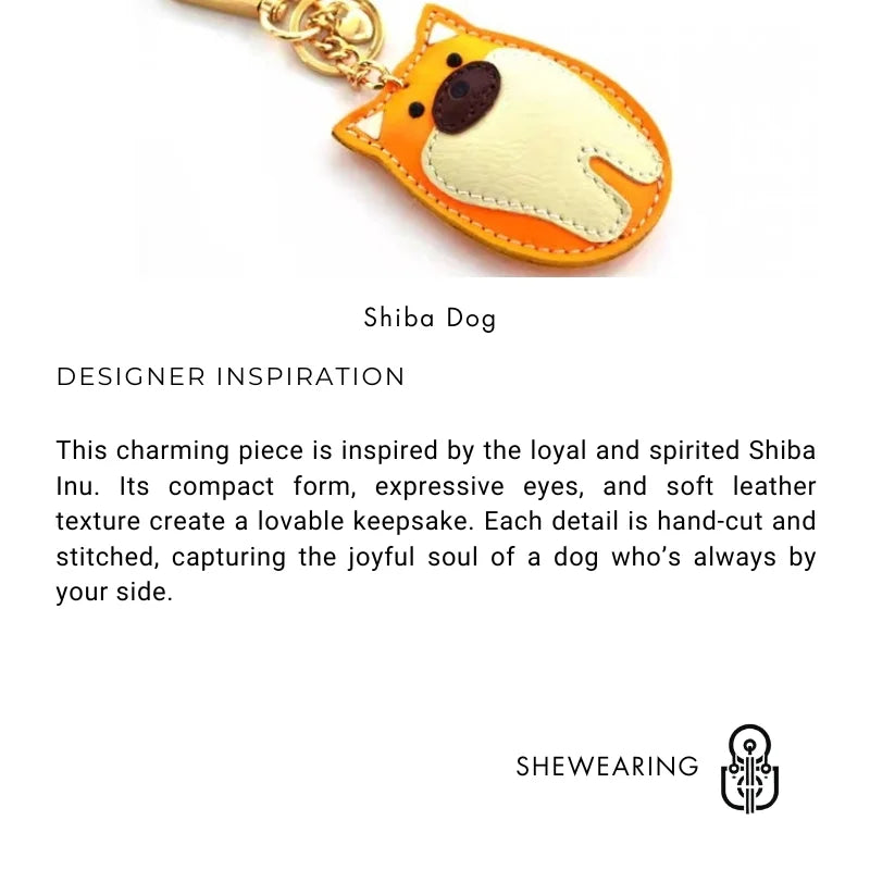 Dije de perro Shiba Inu para bolso – Llavero de piel de vaca de grano completo hecho a mano | Bonito colgante inspirado en mascotas para bolsos y diarios | Un regalo divertido para amantes de los perros