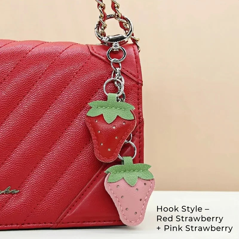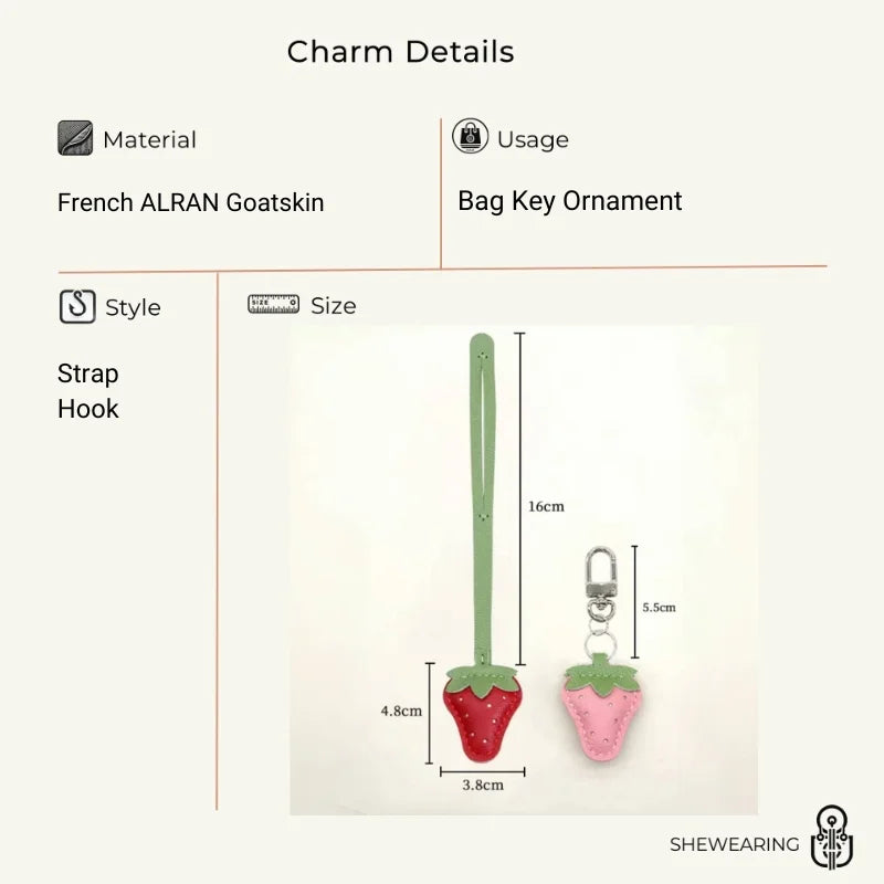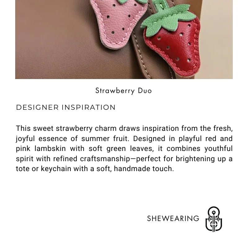 Dale un toque de color a tus accesorios diarios con este encantador Charm para Bolso de Cuero con Forma de Fresa, con fresas rojas y rosas elaboradas en piel de cordero flor de primera calidad. Cada pieza está cortada y cosida a mano, revelando una suavidad y una textura exquisitas, lujosas y deliciosas al tacto.