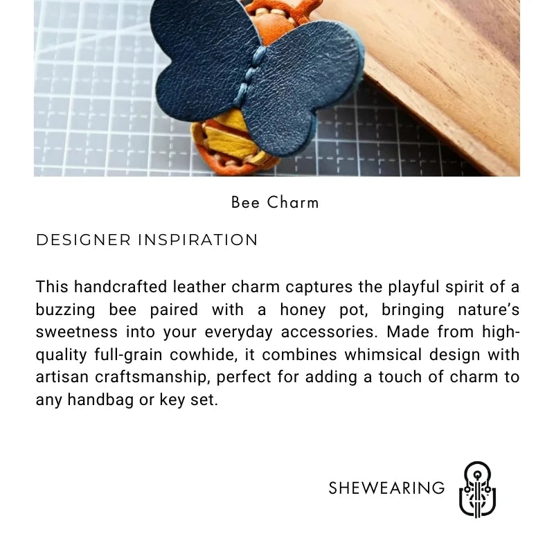 Celebrate nature’s lively spirit with the Bee & Honey Pot Leather Bag Charm, a playful accessory designed for style-conscious individuals who value unique craftsmanship. Handmade from premium full-grain cowhide, this delightful charm features a whimsical bee with soft leather wings and a miniature honey pot, symbolizing sweetness and joy. Each detail is carefully stitched and crafted, showcasing artisan expertise while ensuring durability for daily use. Lightweight yet striking, it works beautifully as a handbag pendant, a keychain, or a thoughtful gift for someone special. Its vibrant mix of yellow, orange, and blue tones adds a cheerful pop of color to your accessories, making it a standout piece that reflects your personality. Whether you are enhancing your own style or gifting a charming keepsake, this bee-inspired leather pendant brings together playfulness, elegance, and lasting quality in one creative accessory.