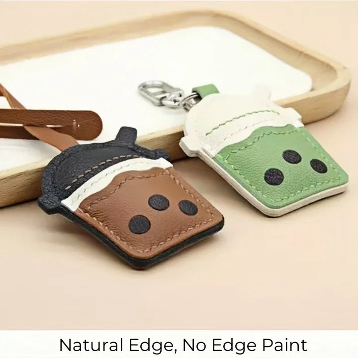 Bubble Tea Cup Leather Bag Charm – Handmade Full-Grain Sheepskin Keychain | Cute Boba Drink Pendant | Creative Accessory for Handbags & Keys