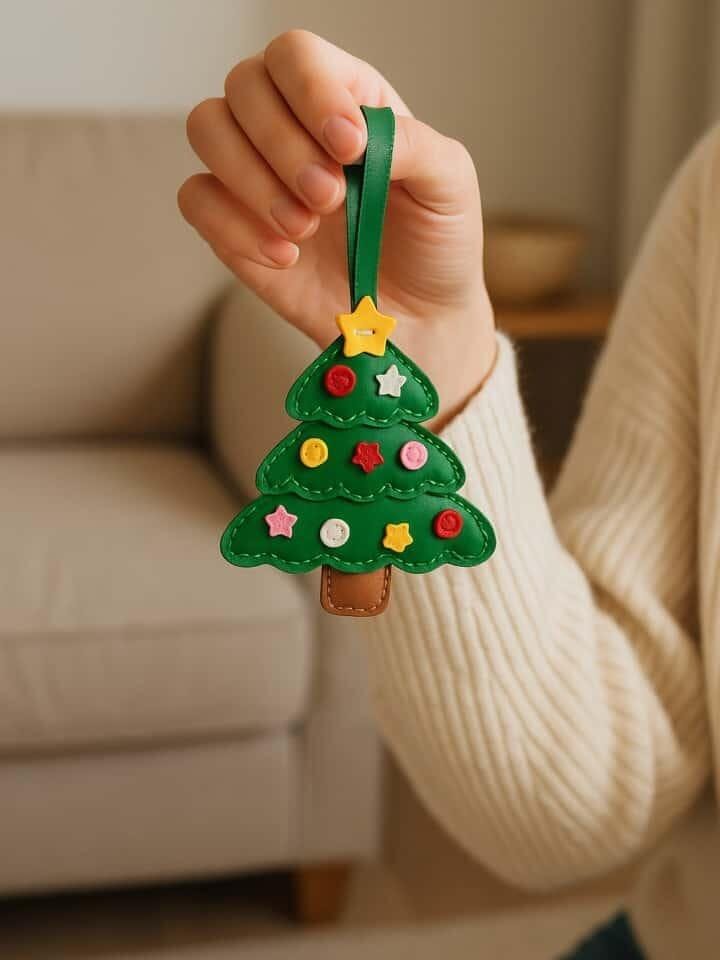 Christmas Tree Leather Bag Charm – Handmade Sheepskin Pendant | Festive Holiday Accessory | Hand-Stitched Keychain & Handbag Ornament