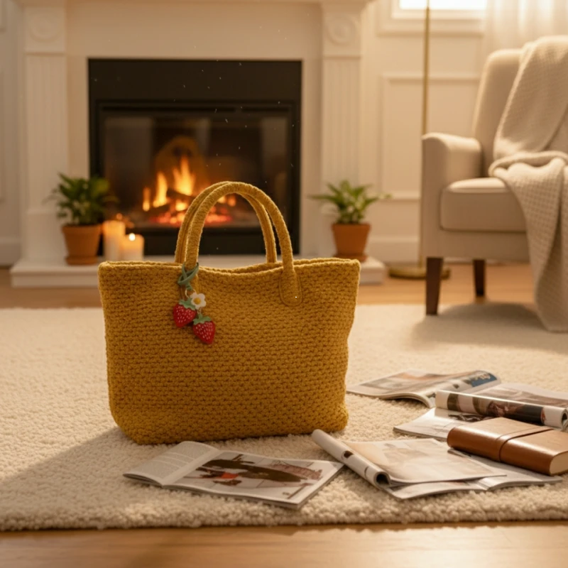 I love how this strawberry charm adds a cheerful note to my quiet mornings. Whether reading on the balcony or enjoying sunlight by the window, it makes my bag feel alive.