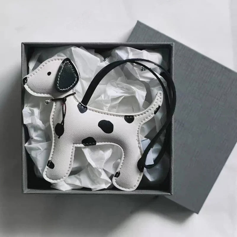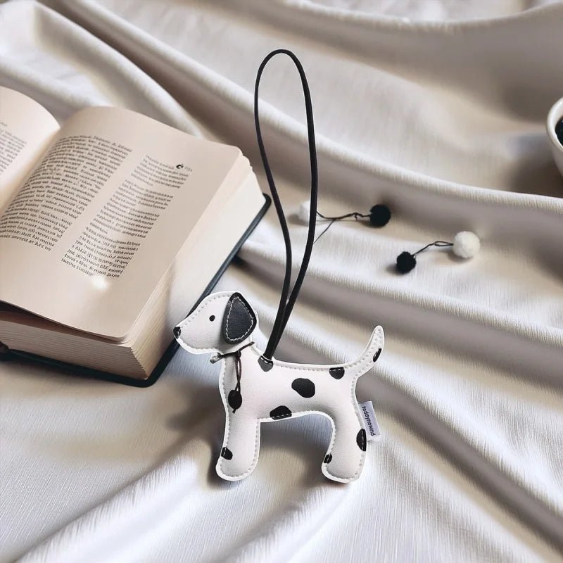 Dalmatian-Inspired Leather Dog Bag Charm – Cute Cartoon Animal Pendant | Handcrafted Faux Leather Accessory | Whimsical Gift for Women