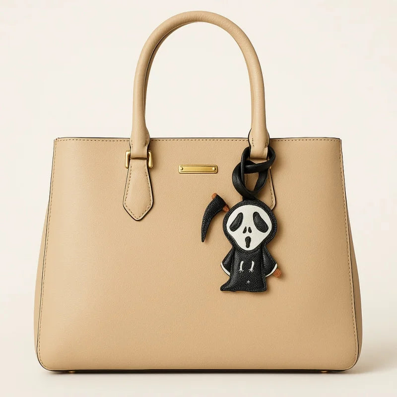 Perfect for Halloween or as a fun collectible, the charm can be attached easily to handbags, totes, or keys. Its compact size ensures it adds flair without overwhelming your bag, while the durable leather construction guarantees long-lasting quality. The design strikes a balance between spooky and stylish, offering a playful nod to festive traditions without losing its premium craftsmanship.