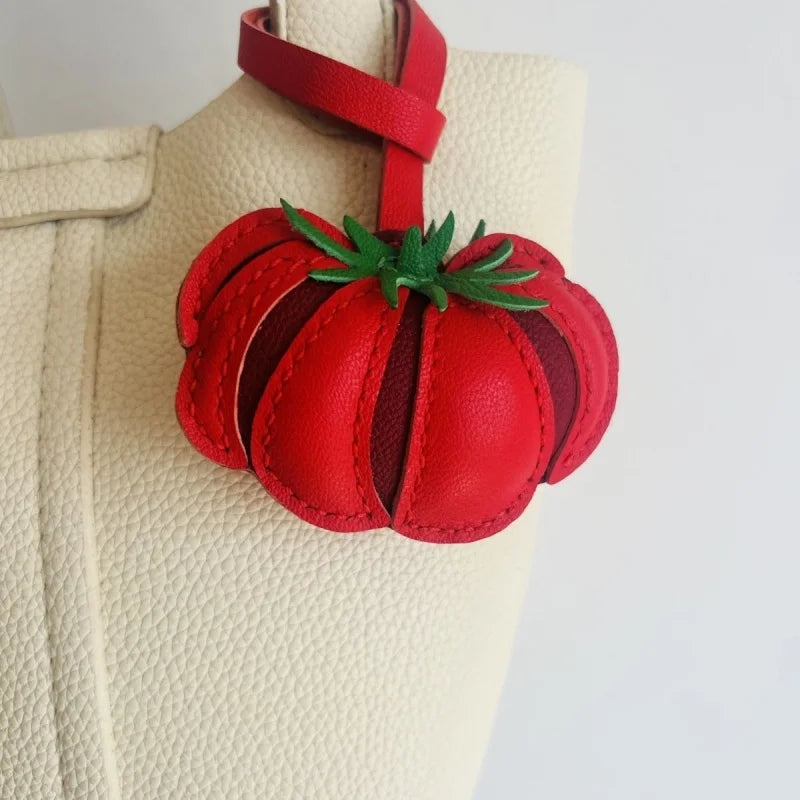 Handcrafted Tomato Leather Bag Charm – Soft Sheepskin 3D Fruit Pendant | Playful Red Statement Accessory | Chic Everyday Gift for Her
