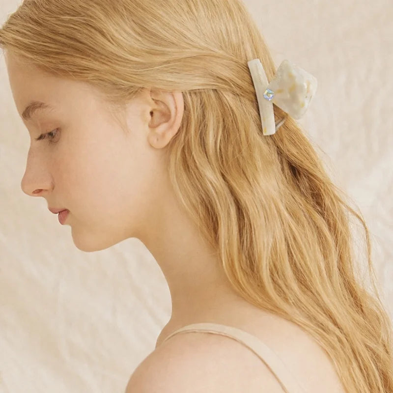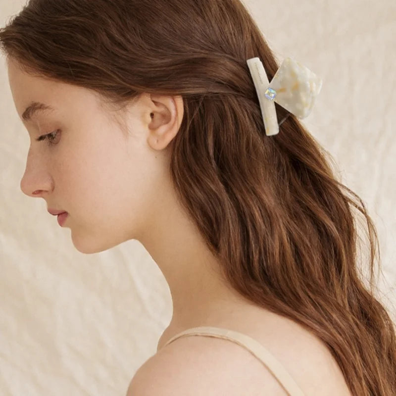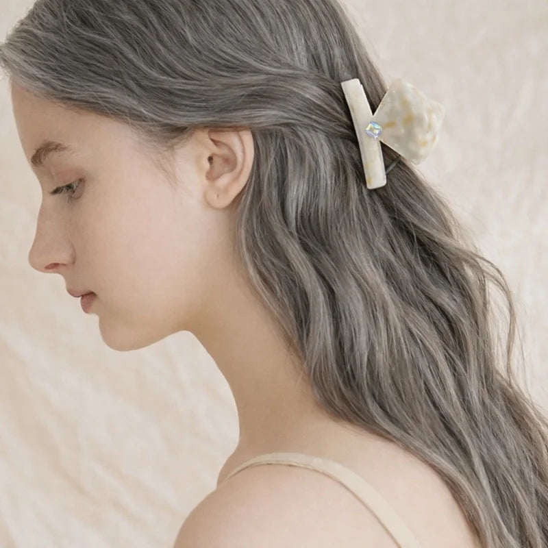 This elegant hair claw clip is designed to reflect quiet sophistication through form, texture, and subtle detailing. Crafted from premium acetate, the piece features a soft ivory marble finish with warm undertones, creating a natural, stone-like appearance that feels both refined and timeless.