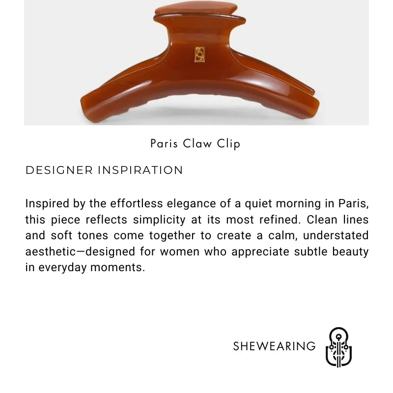 This minimalist hair claw clip is designed for everyday ease with a refined aesthetic. Crafted from high-quality acetate, it features a smooth, glossy surface that glides gently through the hair while offering durability for long-term use. The clean, curved silhouette reflects a modern yet timeless design approach.