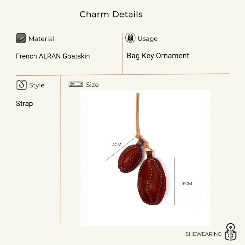 Nordic Coffee Bean Leather Bag Charm – Handmade Full-Grain Cowhide Pendant | Minimalist Double Charm Keychain | Symbol of Warmth & Comfort