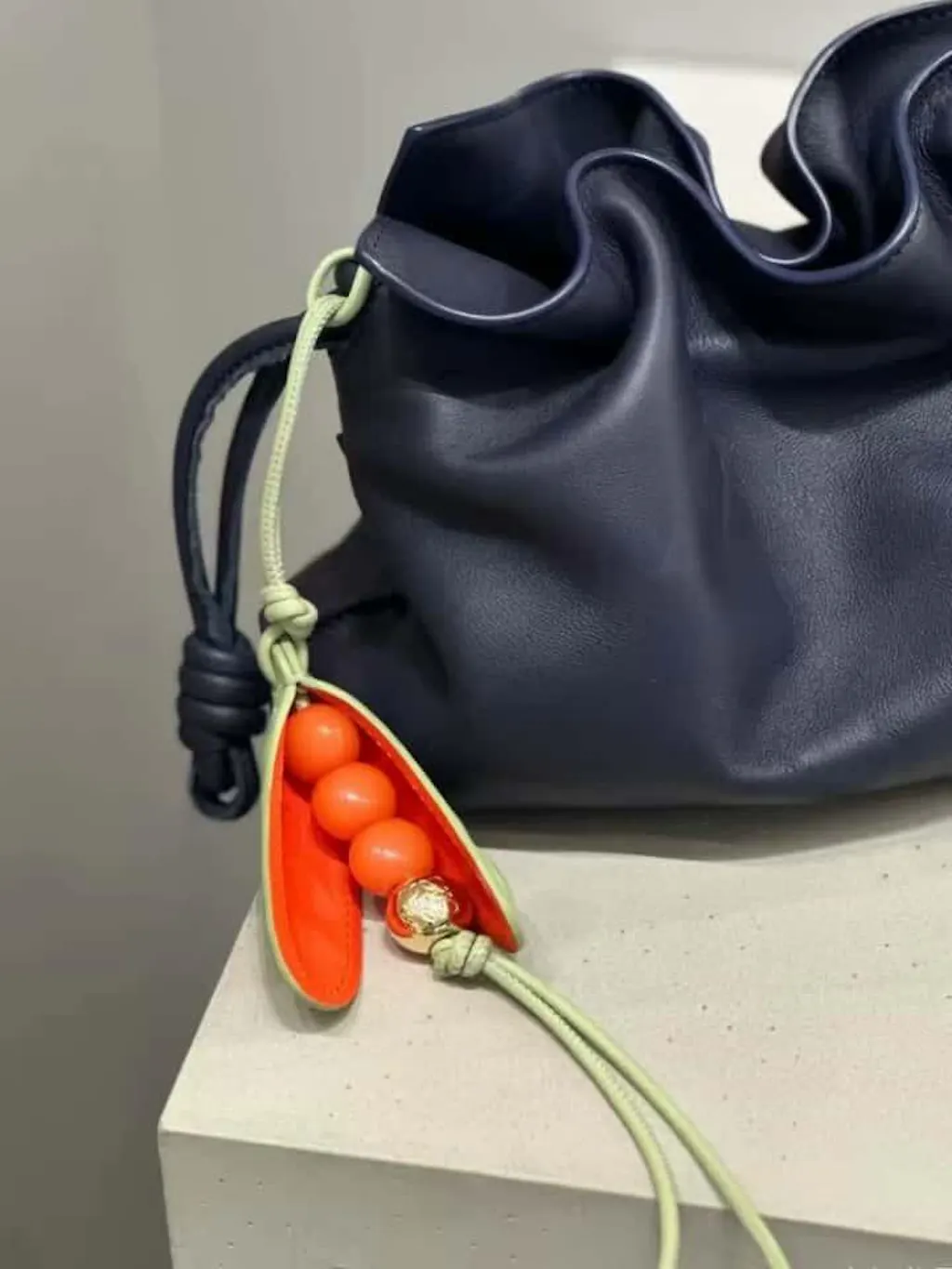 The colors on this pea pod charm are gorgeous - both the green and the bright orange version look so lively. The beads feel smooth and solid, and the leather pod is surprisingly detailed. It's such a cute, creative touch that makes my bag stand out.