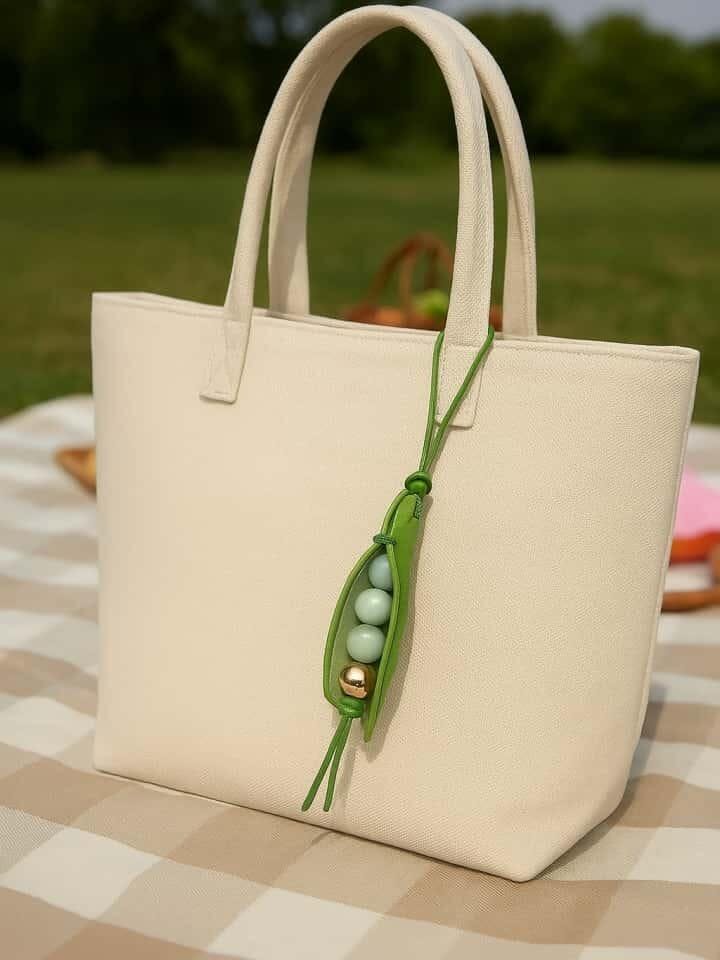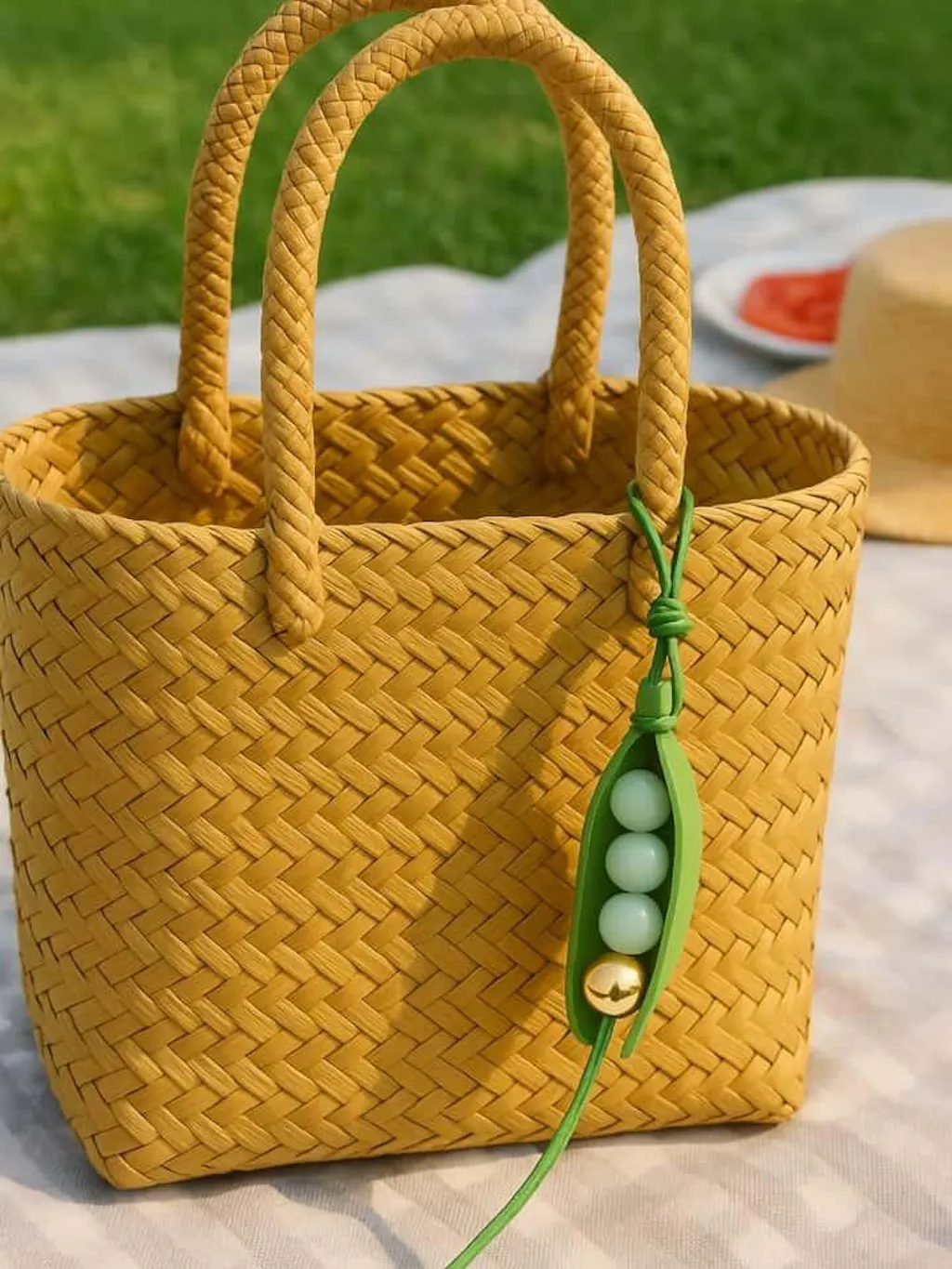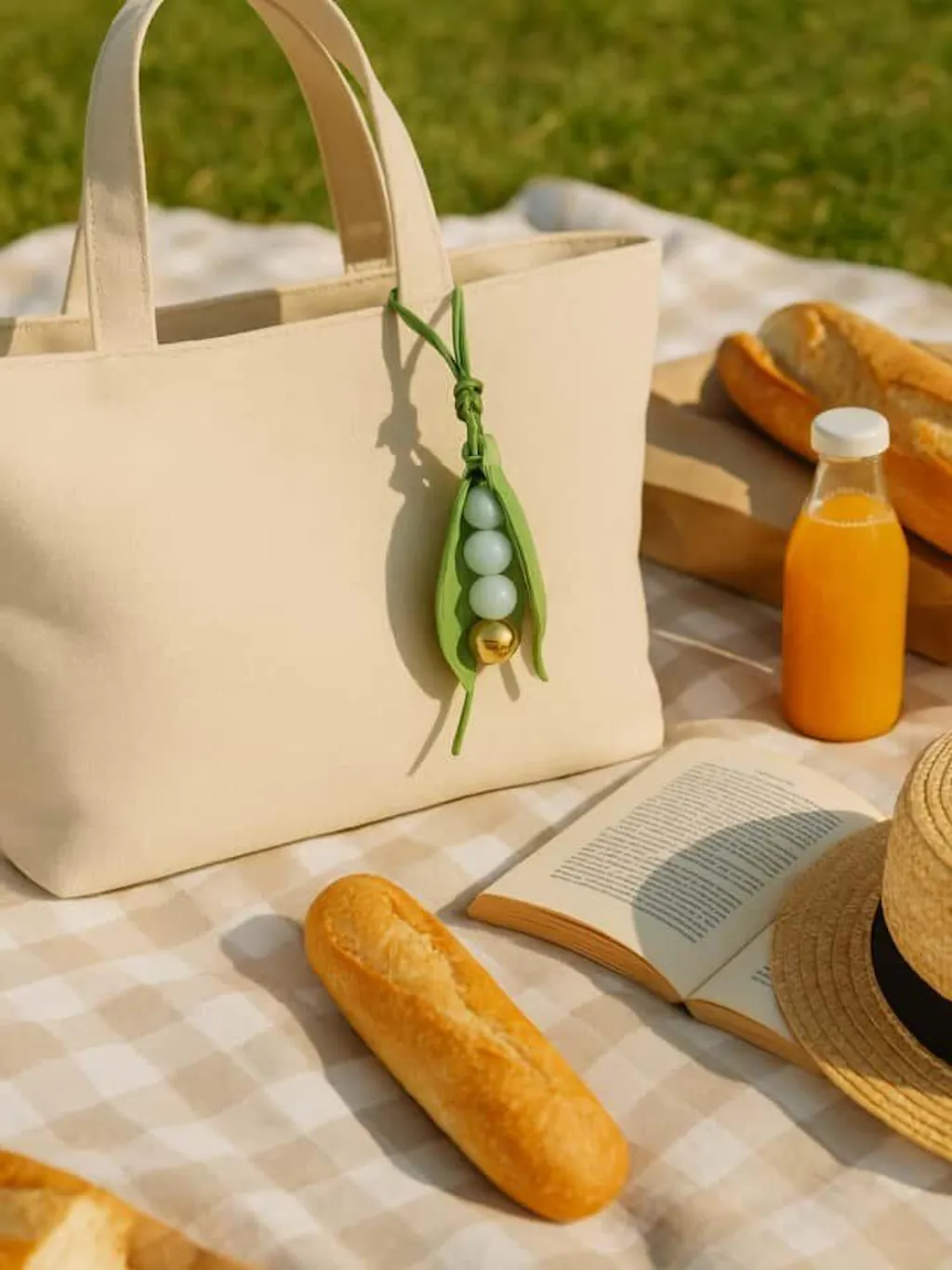 This pea pod charm looks so cute on my picnic bags - the soft green beads and playful design feel fresh and cheerful. The quality is great, and it adds a fun pop of color without being too bold. It's become my go-to accessory for weekend trips.