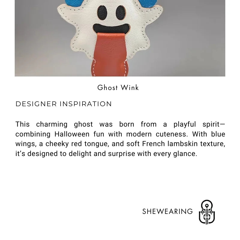 Elevate your everyday bag with a dash of playful charm using this Playful Ghost Leather Bag Charm. Crafted from premium imported French lambskin, this delightful design captures a smiling ghost with bright blue wings and an exaggerated red tongue—bringing joyful mischief to your style. Perfect for Halloween lovers or those who adore quirky, standout accessories year-round, it pairs easily with handbags, totes, or backpacks. The soft leather construction and precise hand-stitching ensure it feels as luxurious as it looks. Lightweight and eye-catching, it’s not just an accessory—it’s a mood booster. A fun, fashionable gift for the whimsical soul who doesn’t take life too seriously.