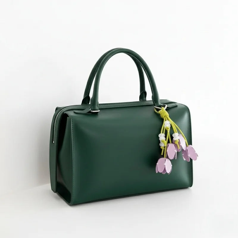 Designed for women who embrace light luxury and quiet sophistication, this charm embodies artistry and individuality. Whether carried as a chic handbag pendant, a key organizer, or a thoughtful gift, its timeless floral design complements both casual and refined styles. With vibrant tulip blossoms symbolizing love, hope, and new beginnings, it is more than an accessory – it is a statement of elegance and positivity.